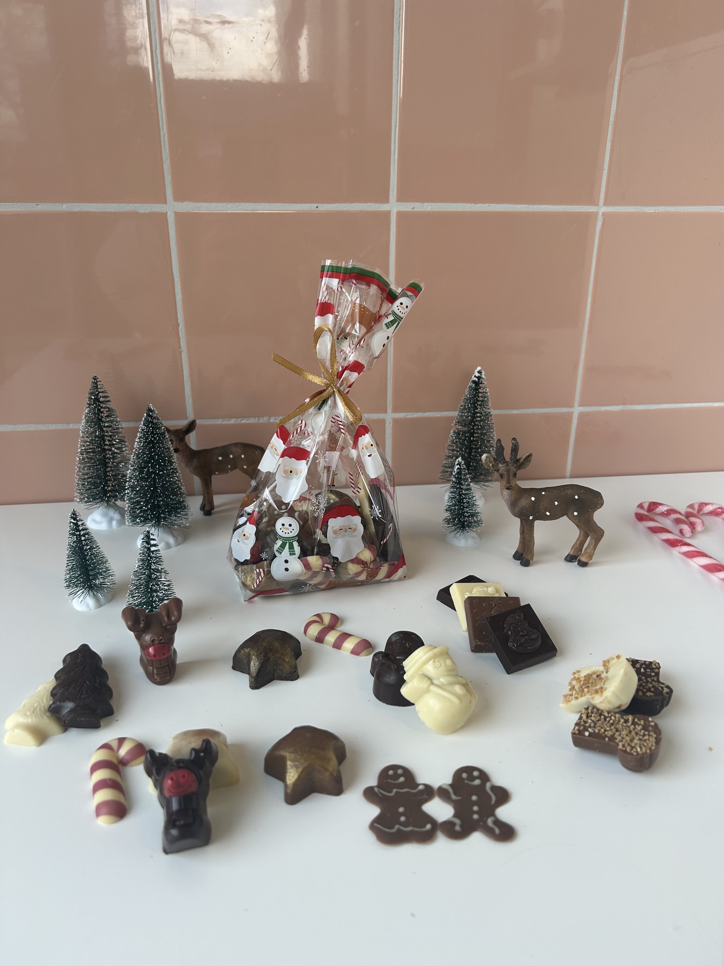 kerstzakje met kerst chocolade (+/- 170gr = 9,5€) inhoud kan variëren
