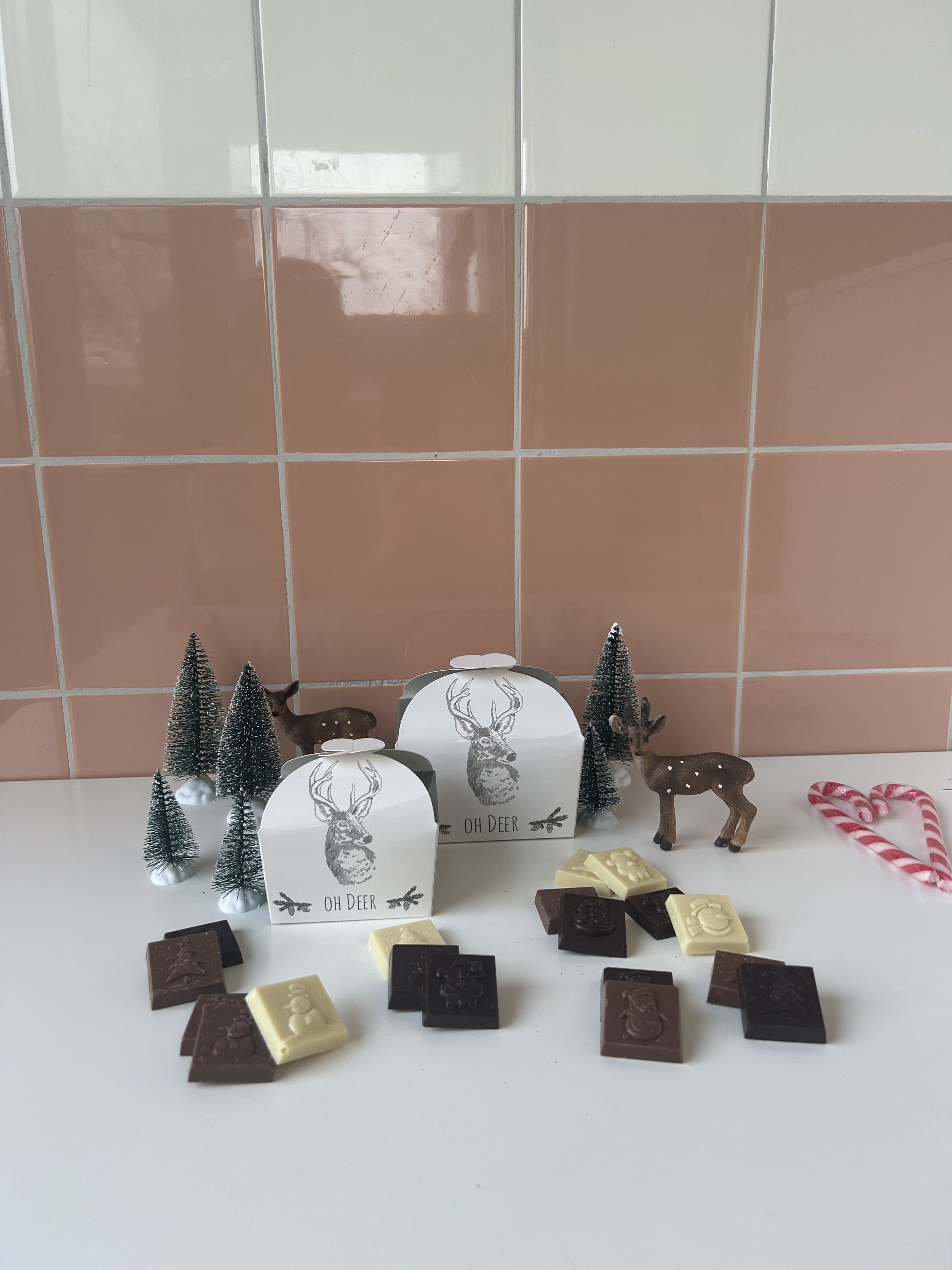oh deer doosjes gevuld met kerst caraques (volle chocolade) (175gr = 9€ // 320gr = 16€)