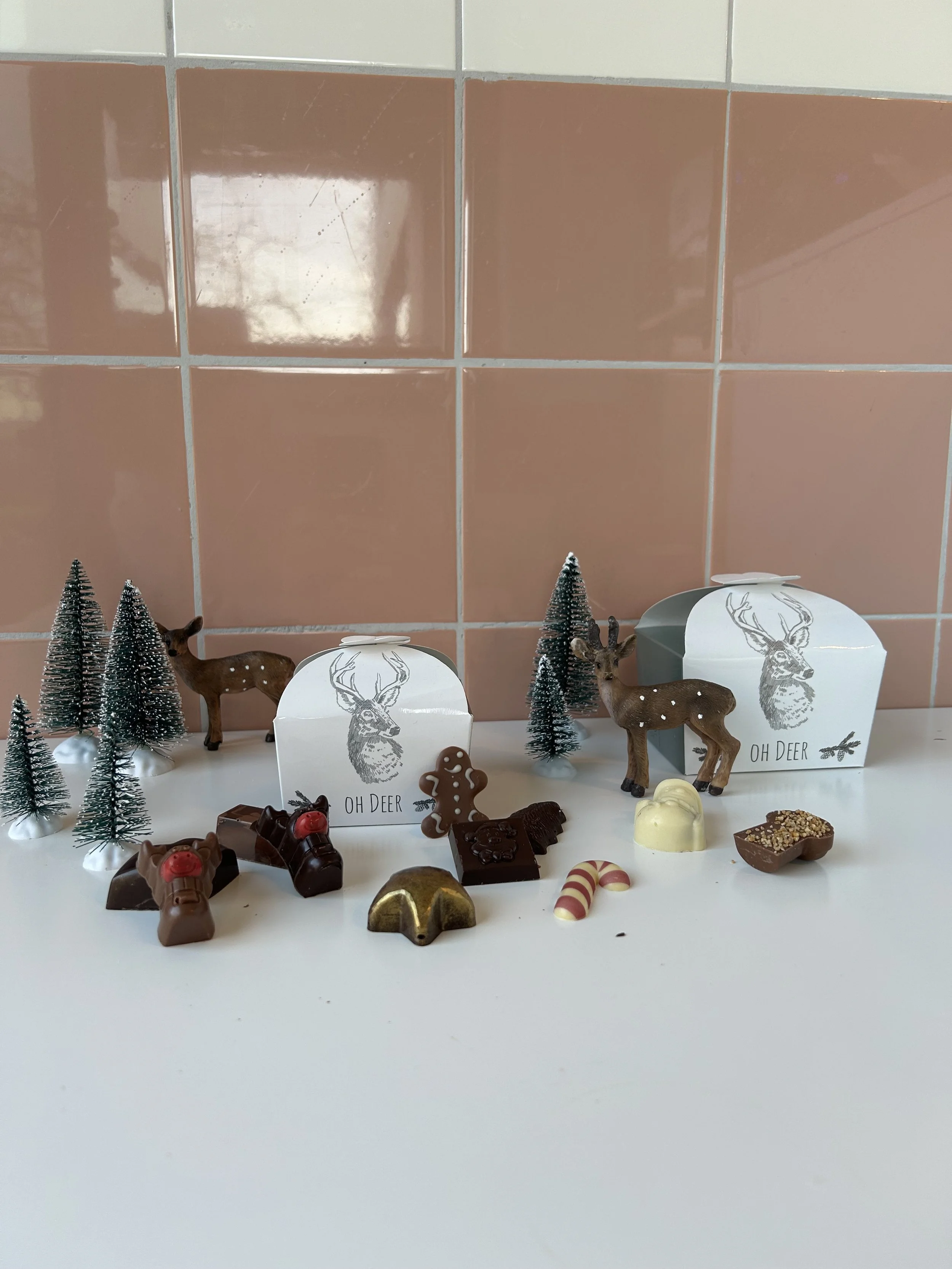 oh deer doosjes gevuld met een mengeling van pralines (150gr = 8,5€ // 275gr = 15€)